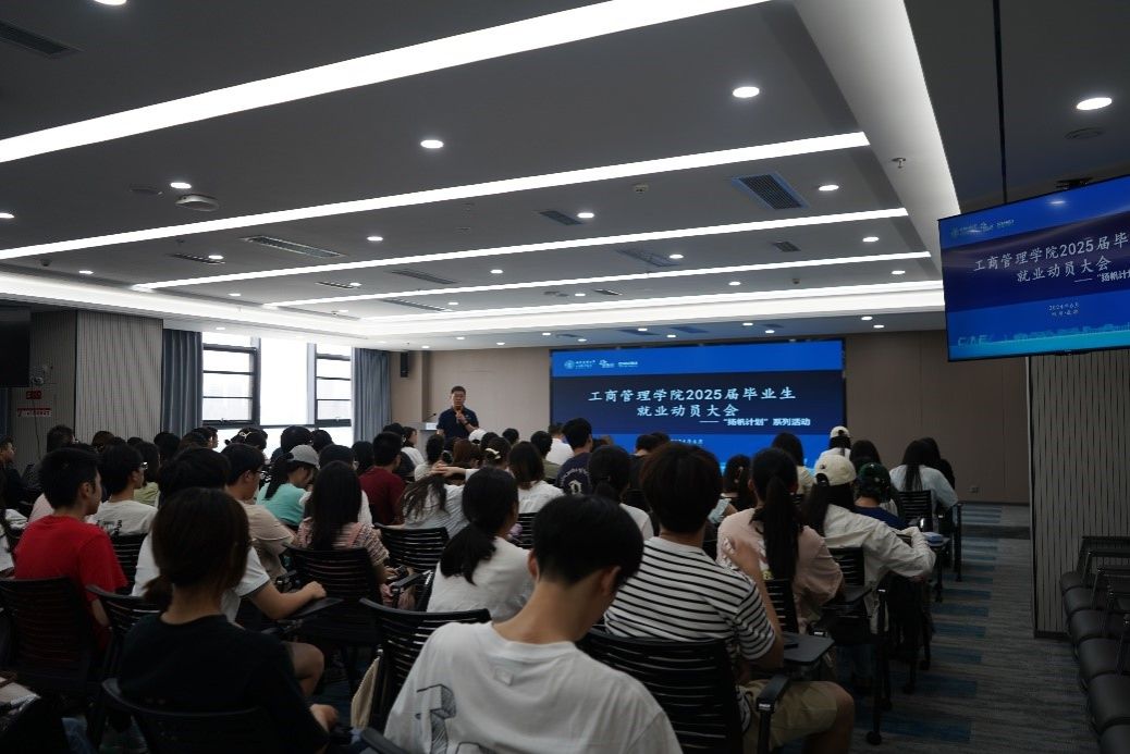 为进一步做好2025届毕业生就业工作部署及动员,实现高质量就业,按照学校安排部署,工商管理学院于6月25日在诚正楼1122会议室召开2025届毕业生就业动员会暨“扬帆计划”生涯发展系列活动。学院党委书记郑茂,党委副书记、纪委书记胡国平,党委副书记王昱夫,学院优秀校友陈筱芝、学生职业规划与就业指导中心余婧,全体毕业班辅导员及学院2025届毕业生参会,会议由王昱夫主持。