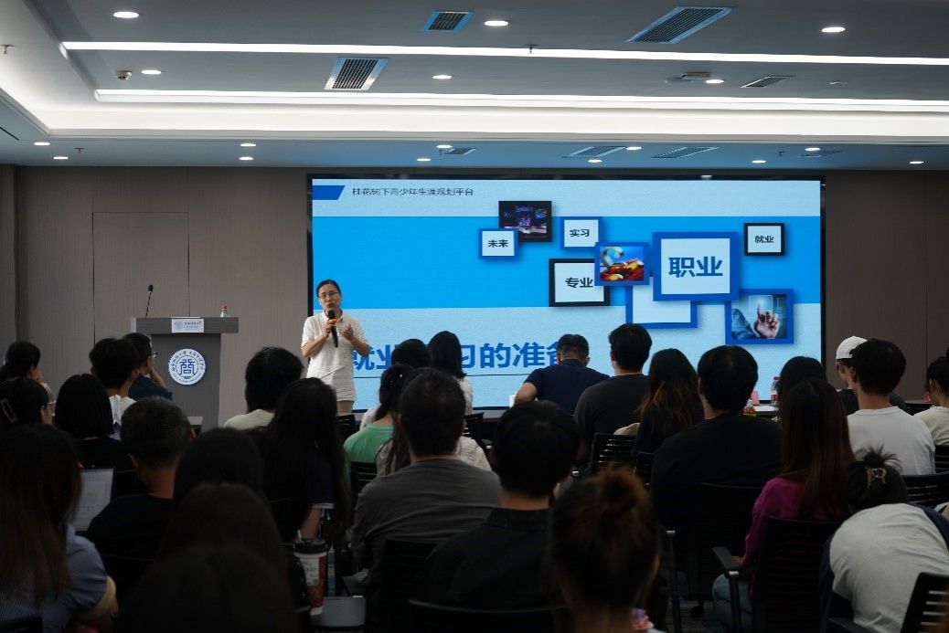 郑茂首先作2025届毕业生就业工作动员部署。他指出,学院党委一直以来深入贯彻落实习近平总书记针对就业问题的重要指示精神,主动扛起政治责任,紧抓就业工作“一把手工程”,多措并举为毕业生开拓岗位资源提供就业服务。他对同学们提出了三点建议:一是认清就业形势,树立信心转变就业观念;二是积极主动,持续提升就业核心竞争力;三是要树立远大理想,到祖国最需要的地方去。随后,在前期调研基础上,本期“扬帆计划”生涯发展系列活动特别邀请了学院校友陈筱芝、就业中心余婧就生涯规划、就业实习准备、学校就业服务供给等进行专题分享。陈筱芝从个人经历出发,分析了当前就业市场环境形势,分享了就业实习准备阶段的注意事项;余婧从学校和学院就业情况、求职建议和就业服务等方面进行了分享。