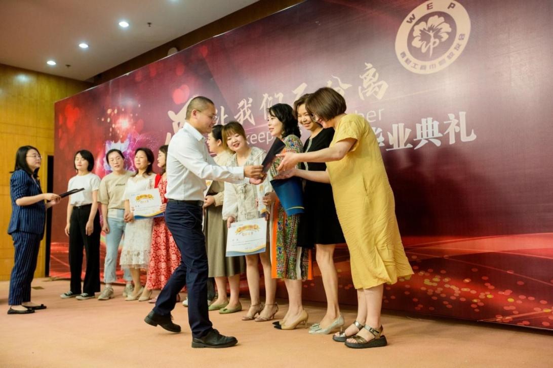 任课教师代表罗珉、曾永江、段兴国随后分别致辞,祝福全体学员不断学习、继续成长。巾帼校友会代表涂小蓉向全体学员分享个人学习经历并表达了祝贺。学员代表张若萍向学校和学院表示感谢,肯定了项目给自己带来的成长,并祝福项目越办越好。班主任老师桂菠转达北京外国语大学杨丹校长寄语,并对全体学员表达了衷心祝愿。最后,胡国平为到场学员颁发结业证书,大家合影留念。